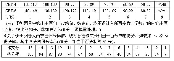 另外,《大纲》在附录中详细说明了“全国大学英语四、六级考试(CET4~CET6)作文题评分原则及标准”: